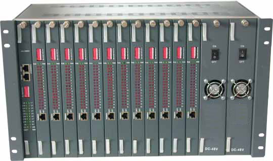 產(chǎn)品簡介 HS-12 12槽4/8E1機架使用的是19英寸標準機箱,高4U,其最大容量為12塊4E1/10(100)BaseT適配卡,或者4E1,8E1,16E1光端機插卡。HS-12 12槽4E1機架式轉(zhuǎn)換器中的每塊適配卡的指示燈均顯示在前面板,接口線連接在背面板,這樣就保證了在插拔適配卡時不影響接口連接。